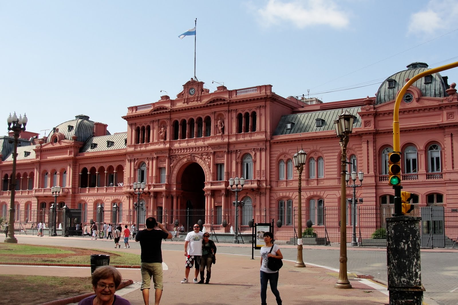 Como não podia deixar de ser, visitei também a belíssima Casa Rosada, na Plaza de Mayo, que por sinal também é muito linda! Imponente, a Casa Rosada é vista de longe, e está cercada por prédios muito bonitos, árvores e uma praça com ambulantes vendendo lembrancinhas da cidade. O local também é cenário de manifestações, possuindo várias faixas pregadas à sua frente. Ficamos um bom tempo por ali, tirando fotos e admirando a arquitetura.